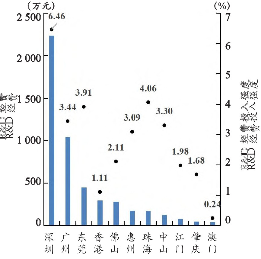 图2 粤港澳大湾区2023年R&D经费及投入强度
