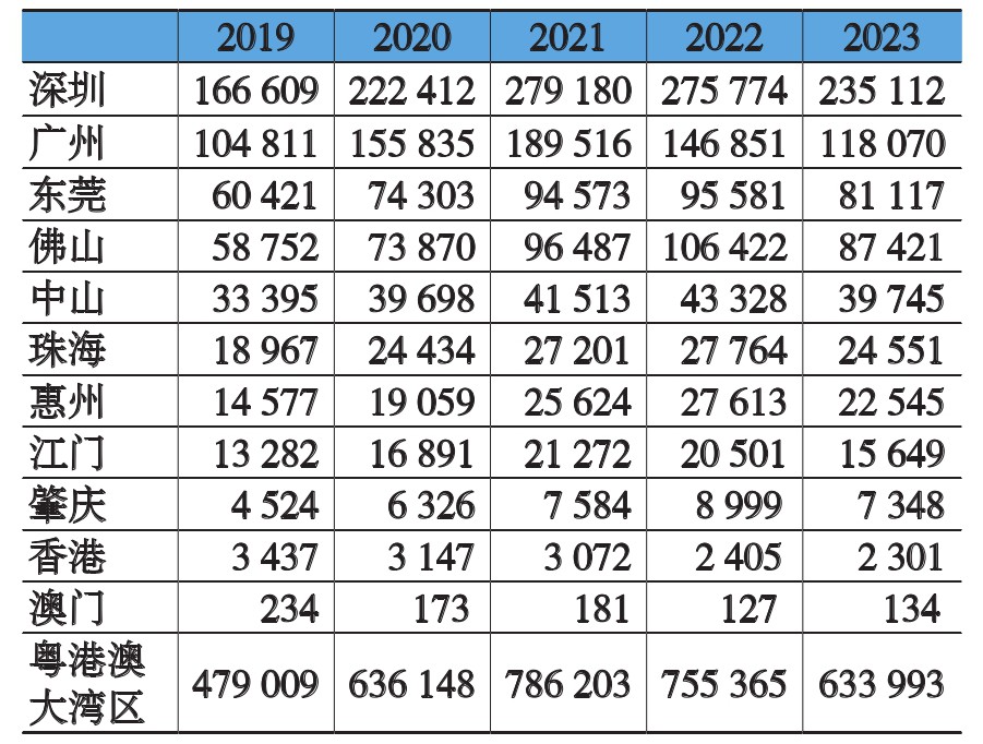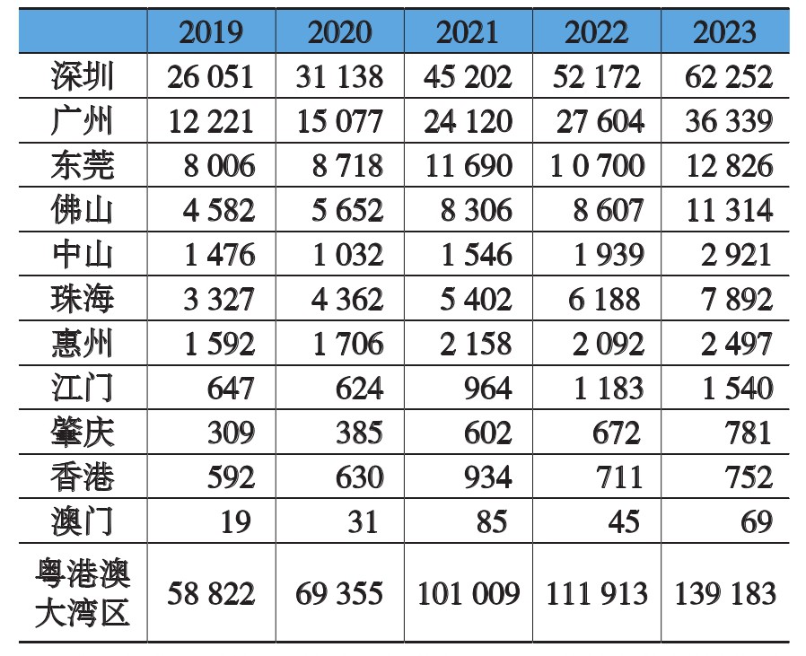表1 2019—2023年粤港澳大湾区专利授权量(单位:件)