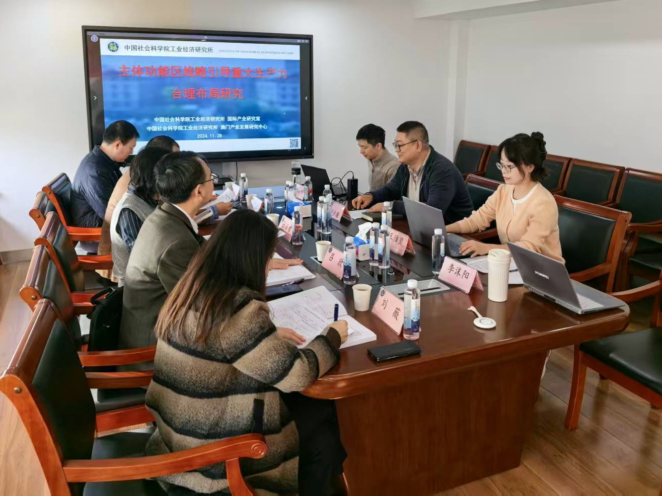 2025年11月28日,中国社会科学院工业经济研究所在科研楼419会议室召开创新工程项目“主体功能区战略引导重大生产力合理布局研究”课题结项评审会。来自中央民族大学经济学院二级教授张丽君,国家信息中心办公室副主任、研究员吕欣,中国机械工业联合会行业发展部主任、正高级工程师姚之驹,北京市社会科学院经济研究所研究员刘薇,北京工商大学教授刘欢五位专家参加了评审。会议由中国社会科学院工业经济研究所澳门产业发展研究中心副主任刘佳骏主持。