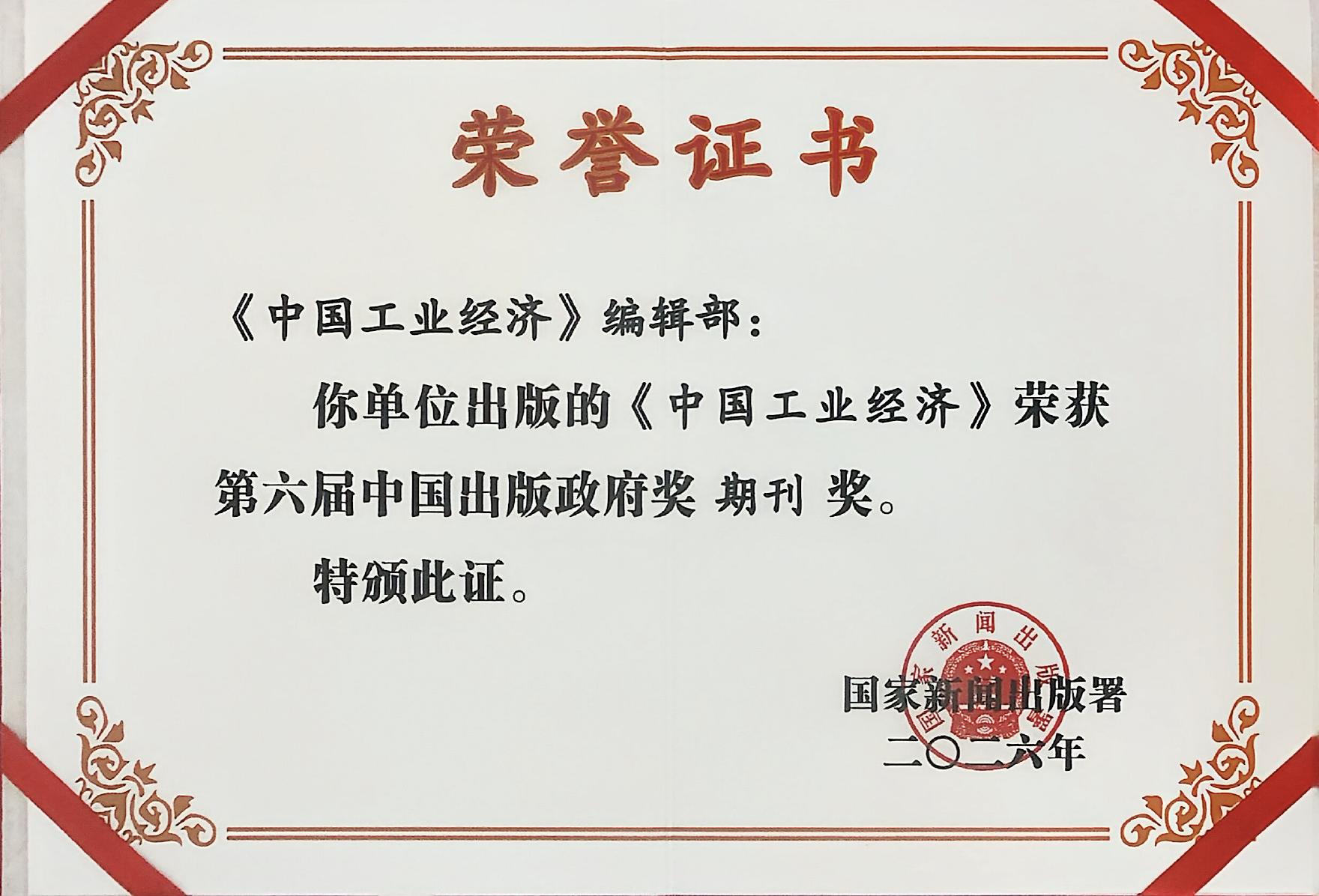 近日,第六届中国出版政府奖获奖名单正式公布,由中国社会科学院工业经济研究所主办的学术期刊《中国工业经济》荣获第六届中国出版政府奖期刊奖。